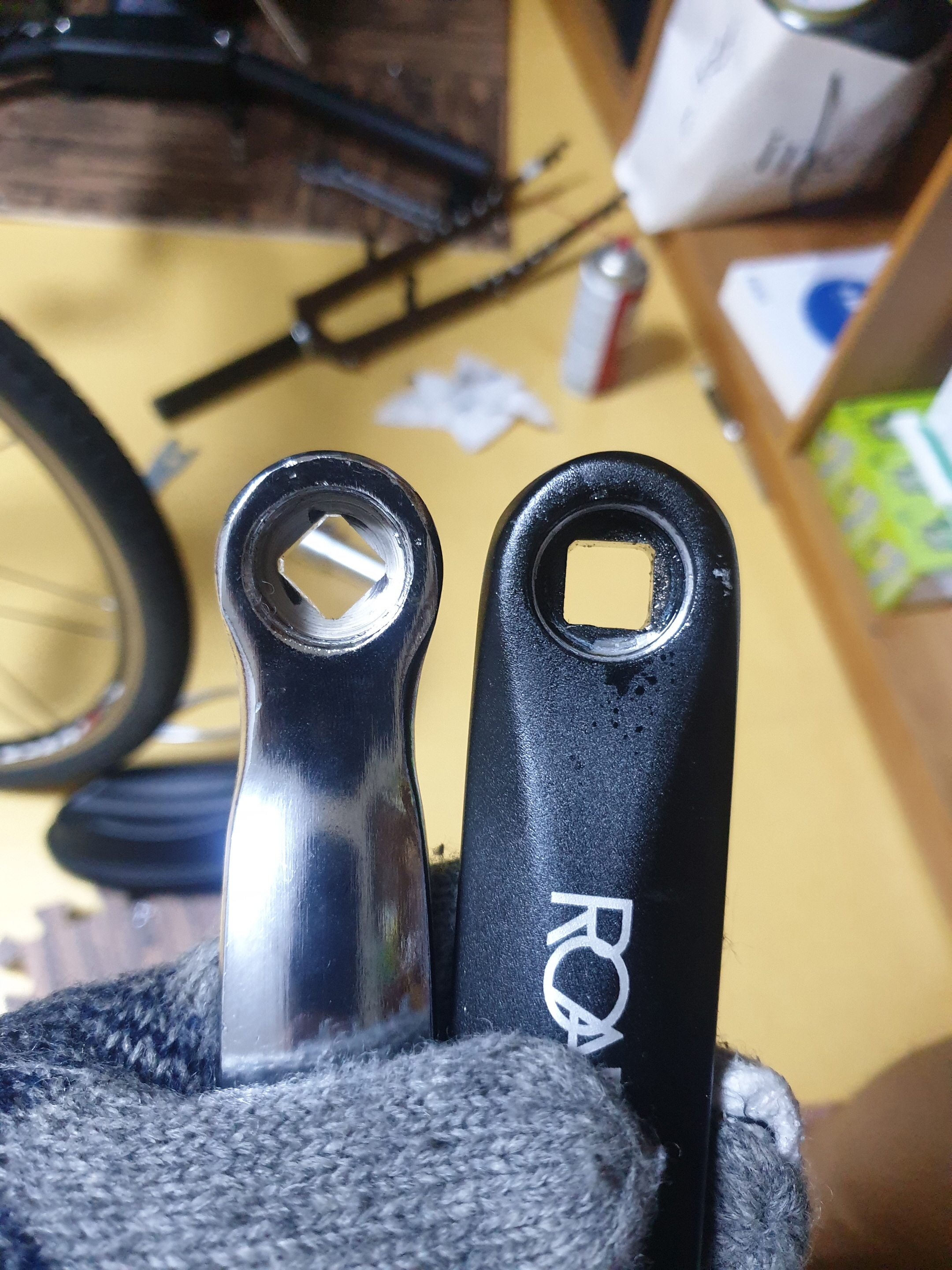 그런데 예상치도 못한 상황이 발생했다. 새로 구매한 사각비비용 크랭크 암의 결착 부위의 각도가 다른 것이었다. 순정 크랭크를 분리해 보지 않아 몰랐던 사실이었다. 검색해 봤을 때도 한 종류밖에 없었는데 다 내 관찰력 부족이다. 다행이 한 온라인 쇼핑 몰에서 순정 크랭크와 똑같은 정방향 크랭크를 팔고 있어 재주문을 하게 되었다. 큰 돈은 아니지만 이렇게 또 비용을 지불하고 하나 배워가게 됐다. 경정비 레벨이지만 하나하나 스스로 할 줄 알아 가는 것도 자전거를 즐기는 재미 중 하나라고 생각한다. 끝.